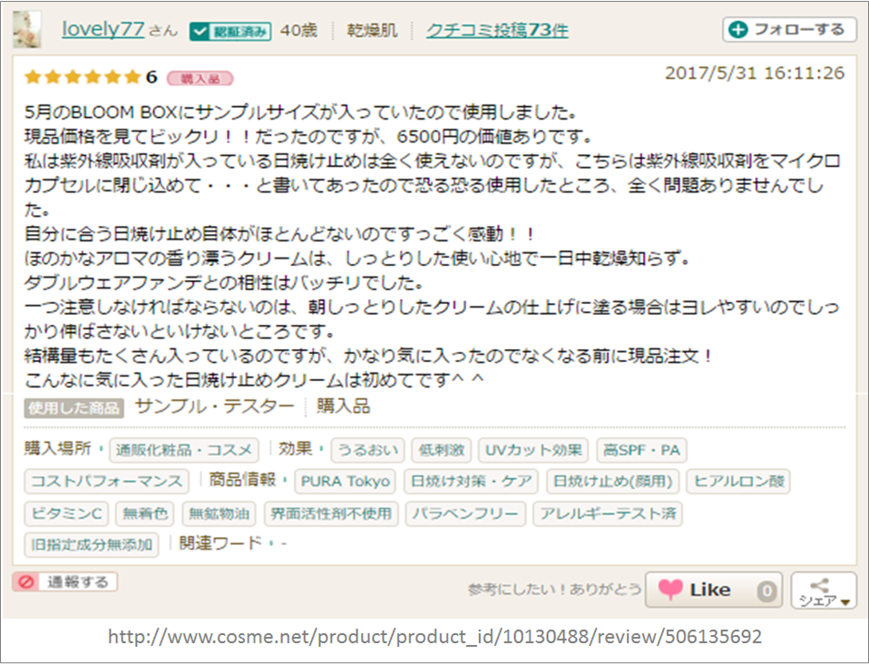 さて、@コスメさんのサイトで「PURA UV プロテクションクリーム」をお使いいただいたお客様からの口コミをシェアさせて頂きます↓