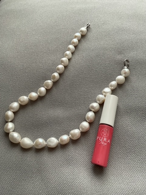 さらには、首元に画面にしっかり映り込む大きさのパールネックレスをつければ完成です!