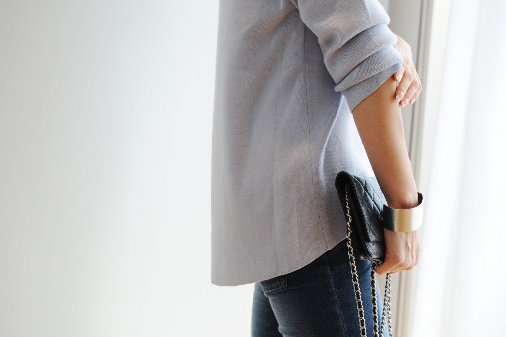 コットンカシミアトップスは前の丈も余裕の長さ