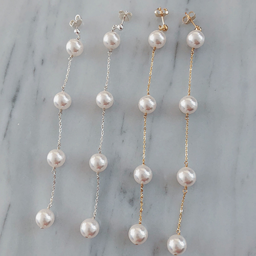 ・4つのパールが耳元でやさしく揺らめく美しいデザイン
